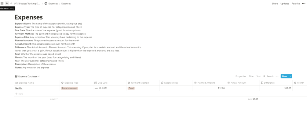 Notion Monthly Budget Planner Database