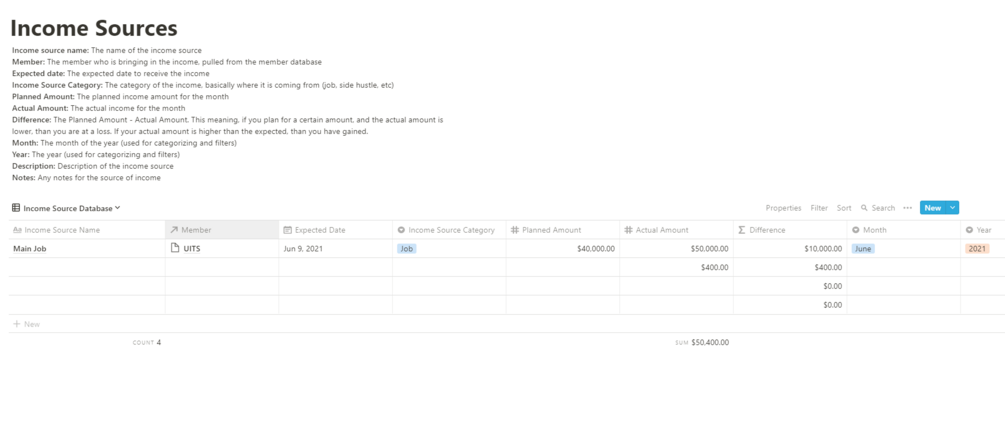 Our monthly budget planner database is great for individual and familial budget planning. This One-Time Purchase database allows you to organize your family's monthly incomes with easy-to-use pages, all while finding new ways to save and increase your financial stability!